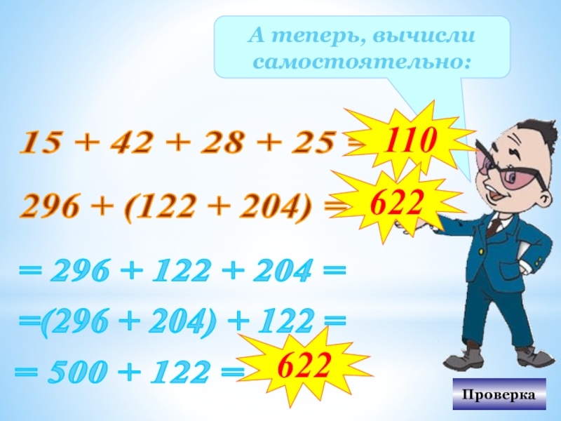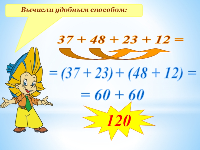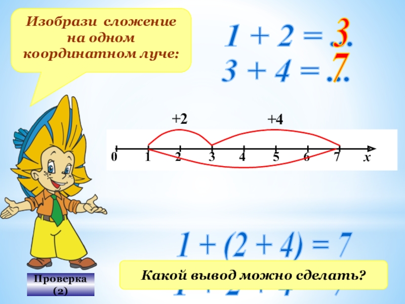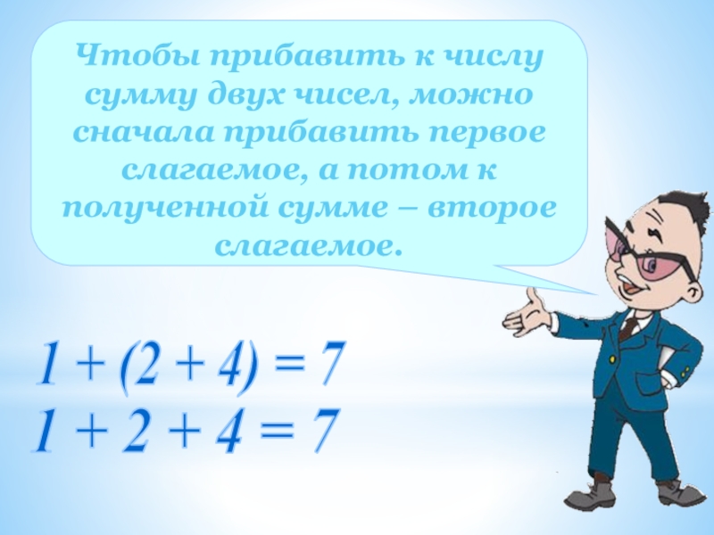 Чтобы прибавить к числу сумму двух чисел, можно сначала прибавить первое слагаемое, а потом к полученной сумме – второе слагаемое.