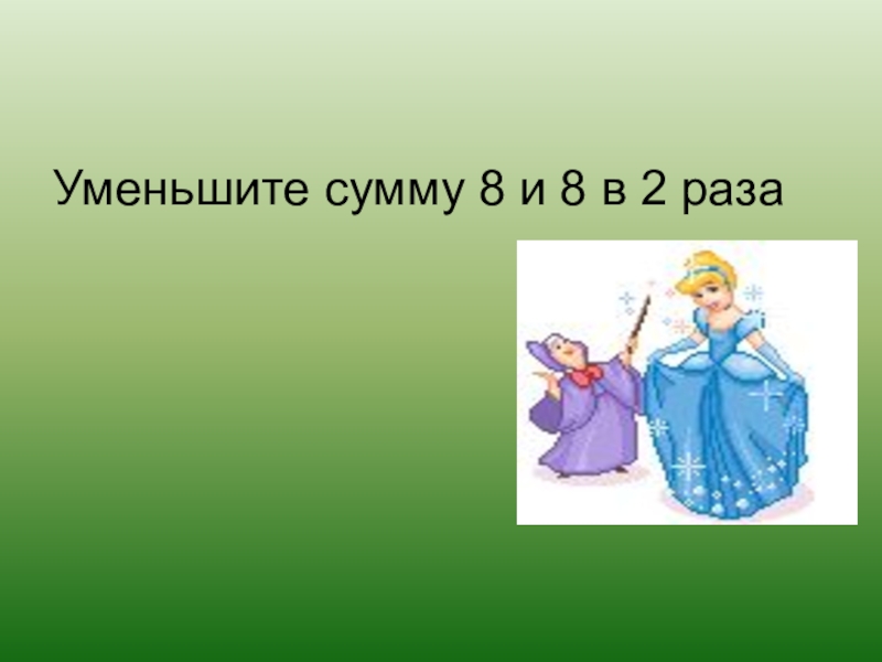 Слайд 5Уменьшите сумму 8 и 8 в 2 раза