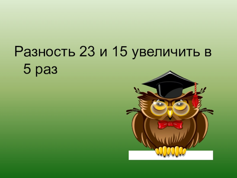Слайд 7Разность 23 и 15 увеличить в 5 раз