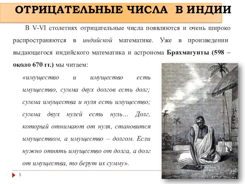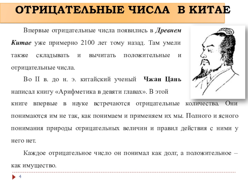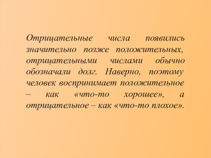 Каждое отрицательное число он понимал как долг, а положительное – как имущество.