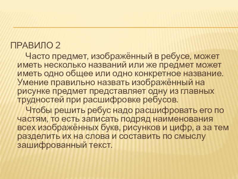 иметь несколько названий или же предмет может иметь одно общее или одно конкретное название. Умение правильно назвать изображённый на рисунке предмет представляет одну из главных трудностей при расшифровке ребусов.