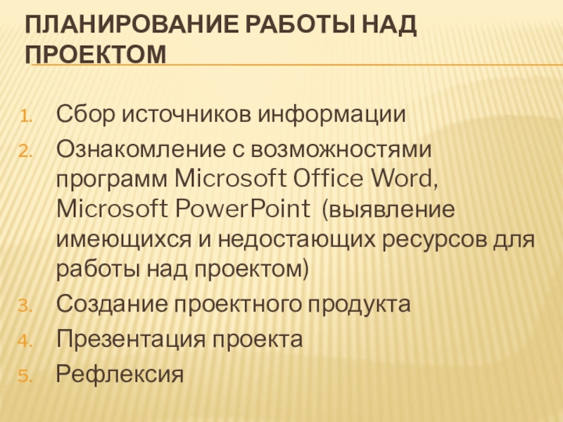 Word, Microsoft PowerPoint (выявление имеющихся и недостающих ресурсов для работы над проектом)
