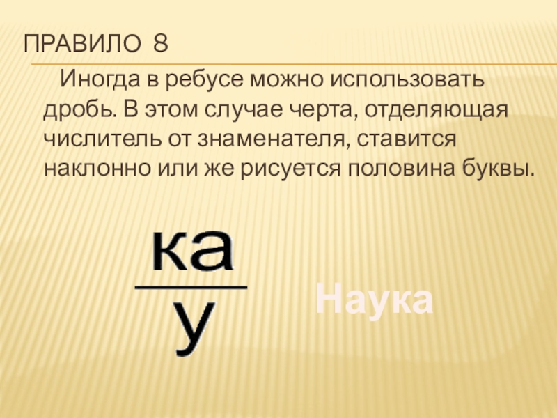 этом случае черта, отделяющая числитель от знаменателя, ставится наклонно или же рисуется половина буквы.