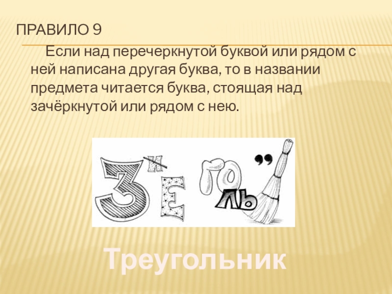 с ней написана другая буква, то в названии предмета читается буква, стоящая над зачёркнутой или рядом с нею.