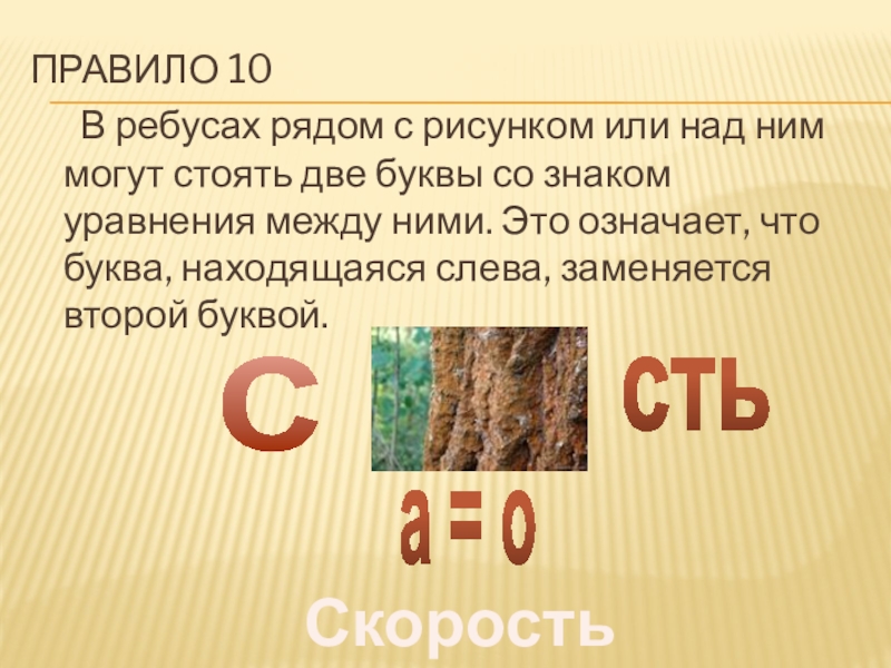 могут стоять две буквы со знаком уравнения между ними. Это означает, что буква, находящаяся слева, заменяется второй буквой.