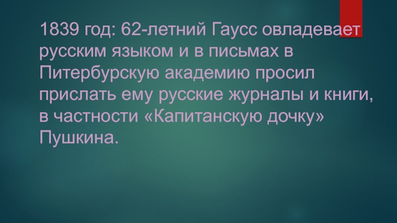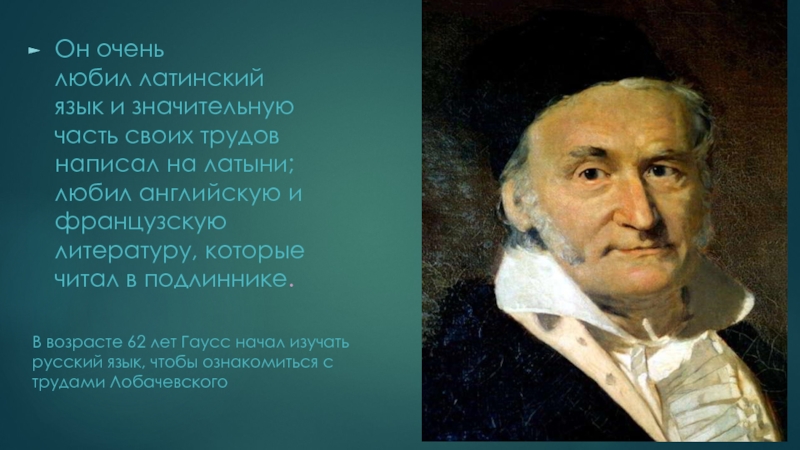В возрасте 62 лет Гаусс начал изучать русский язык, чтобы ознакомиться с трудами Лобачевского
