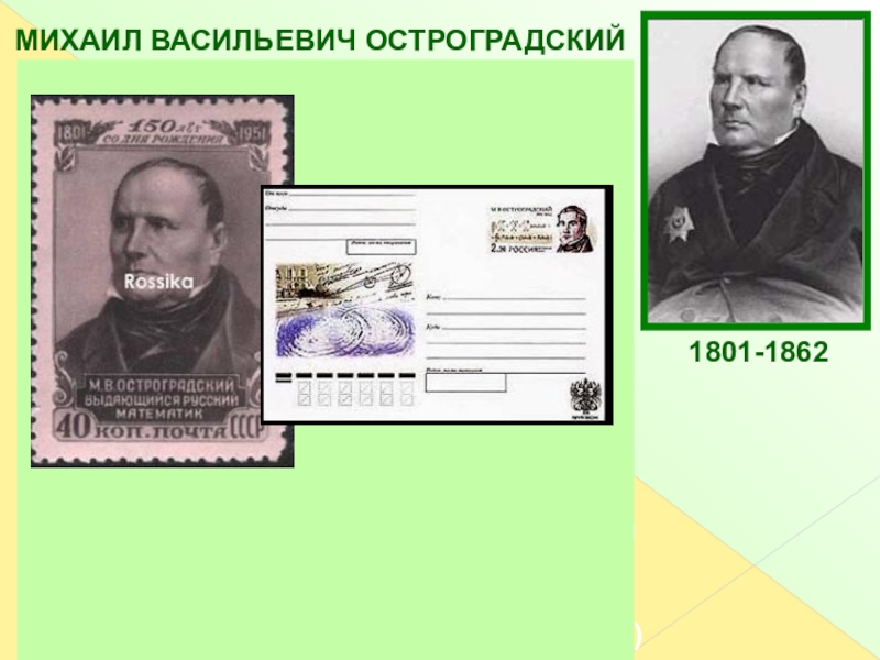 МИХАИЛ ВАСИЛЬЕВИЧ ОСТРОГРАДСКИЙ Российский и украинский математик и механик, признанный лидер математиков Российской империи середины XIX века.Основные