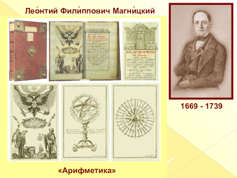 Лео́нтий Фили́ппович Магни́цкий Русский математик, педагог. Преподаватель математики в Школе математических и навигацких наук в Москве. Магницкий