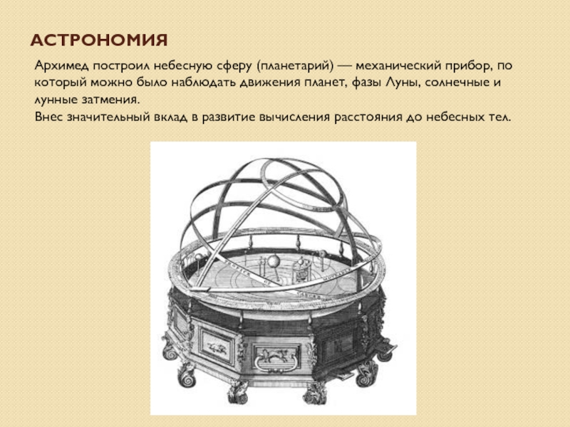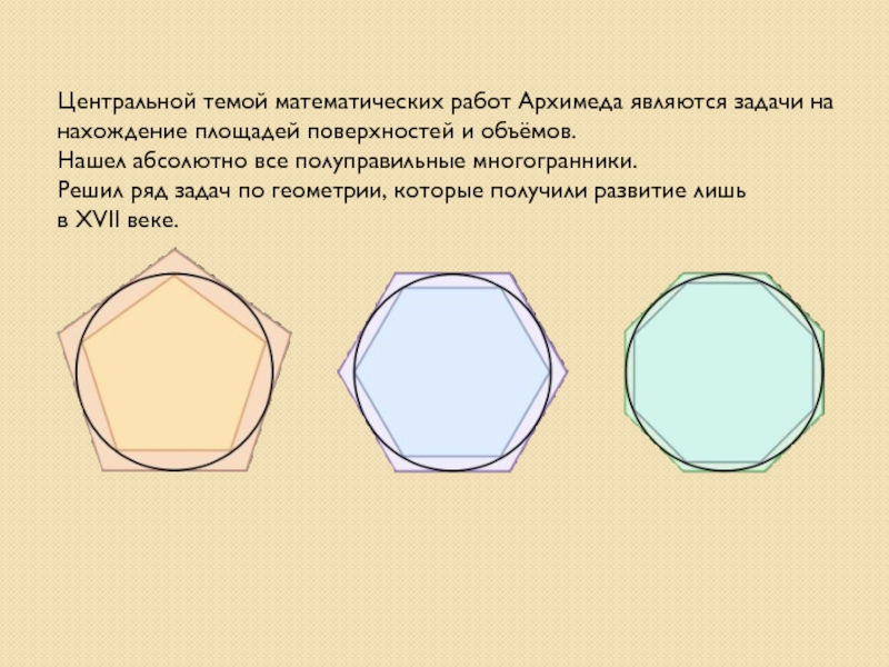 Лучшим своим достижением он считал определение поверхности и объёма шара — задача, которую до него никто решить не мог.