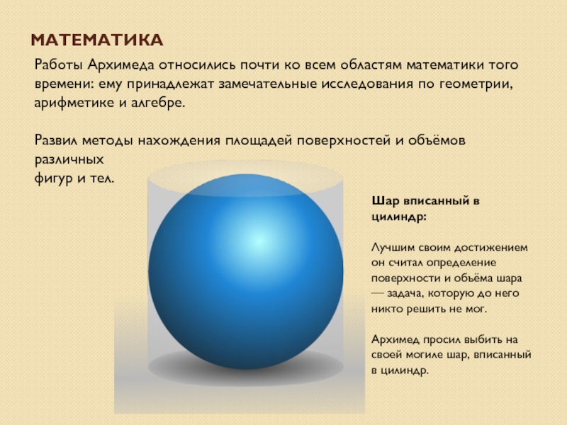 Архимед просил выбить на своей могиле шар, вписанный в цилиндр.
