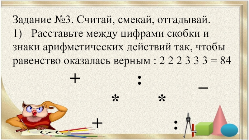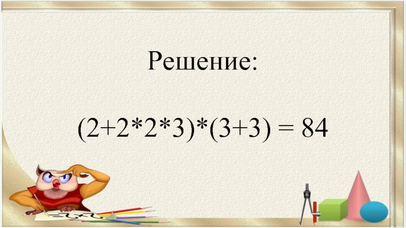 действий так, чтобы равенство оказалась верным : 2 2 2 3 3 3 = 84