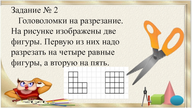 них надо разрезать на четыре равные фигуры, а вторую на пять.