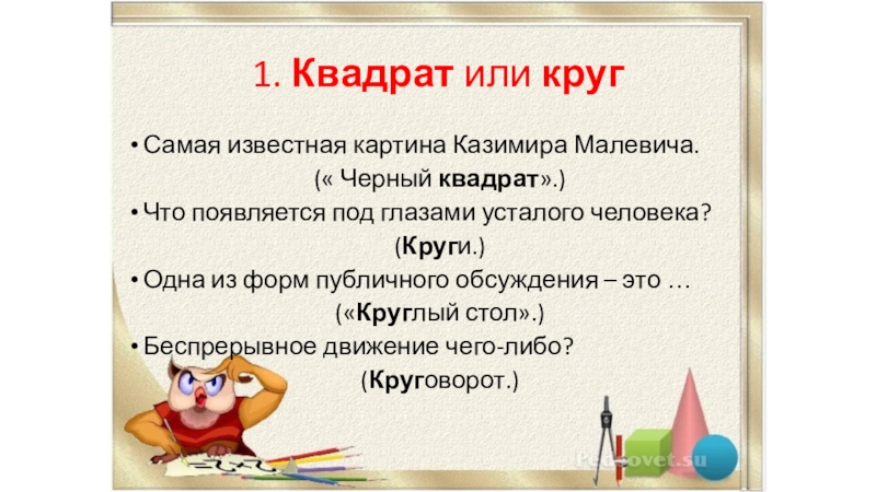 Это сайт презентаций, где можно хранить и обмениваться своими презентациями, докладами, проектами, шаблонами в формате PowerPoint с другими пользователями. Мы помогаем школьникам, студентам, учителям, преподавателям хранить и обмениваться учебными материалами.