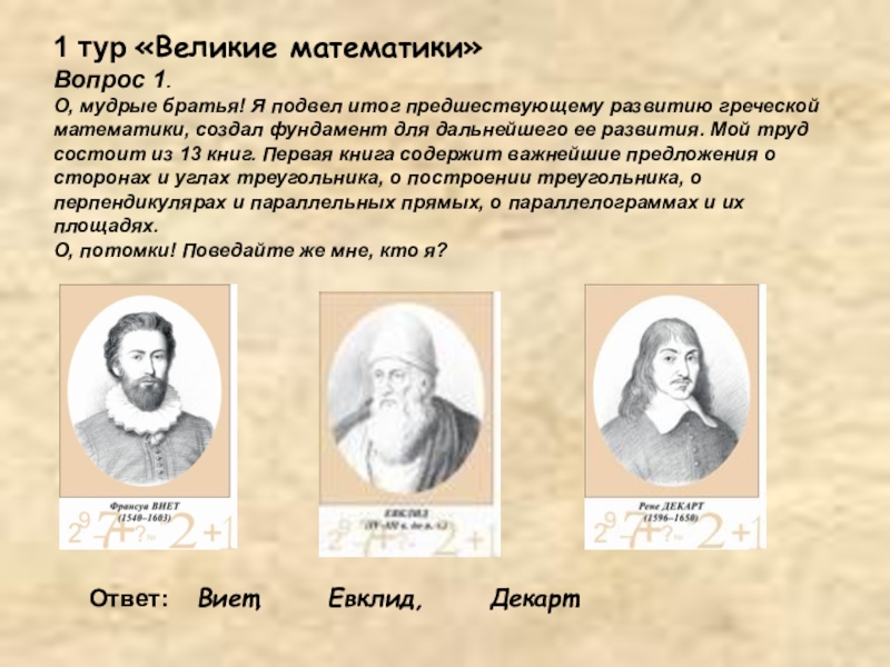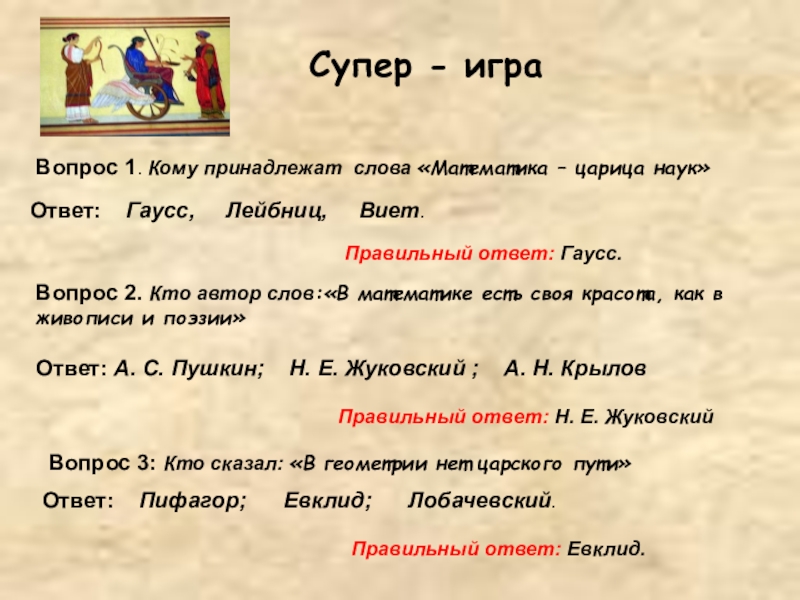 Вопрос 2. Кто автор слов:«В математике есть своя красота, как в живописи и поэзии»