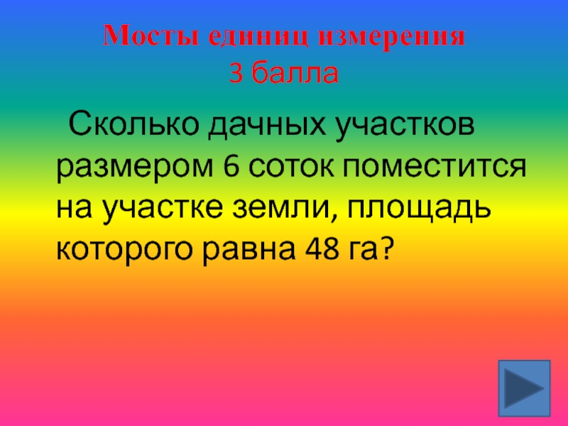 Мосты единиц измерения 3 балла   Сколько дачных участков размером 6 соток поместится на участке земли,
