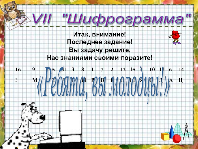 Слайд 9VII "Шифрограмма"