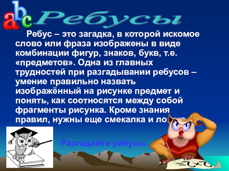Это сайт презентаций, где можно хранить и обмениваться своими презентациями, докладами, проектами, шаблонами в формате PowerPoint с другими пользователями. Мы помогаем школьникам, студентам, учителям, преподавателям хранить и обмениваться учебными материалами.