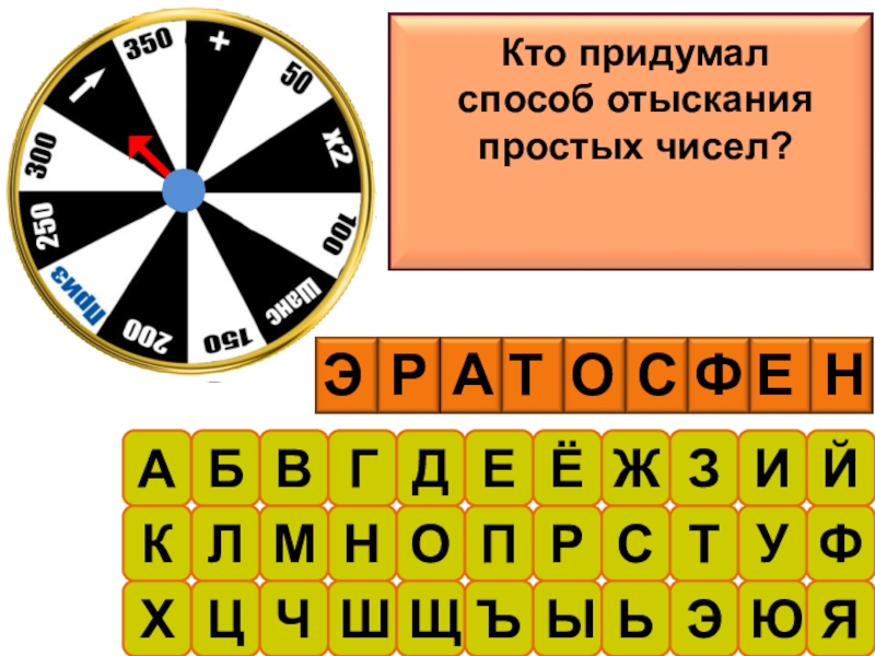 АБВГДЕЁЖЗИЙКЛМНОПРСТУФХЦЧШЩЪЫЬЭЮЯКто придумал способ отыскания простых чисел?ЭРАТОСФЕН