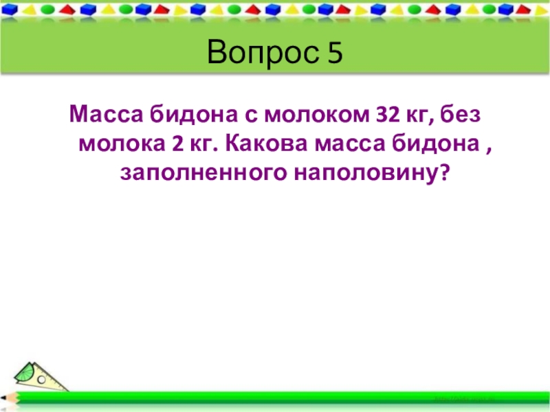 Масса бидона с молоком 32 кг, без молока 2 кг.