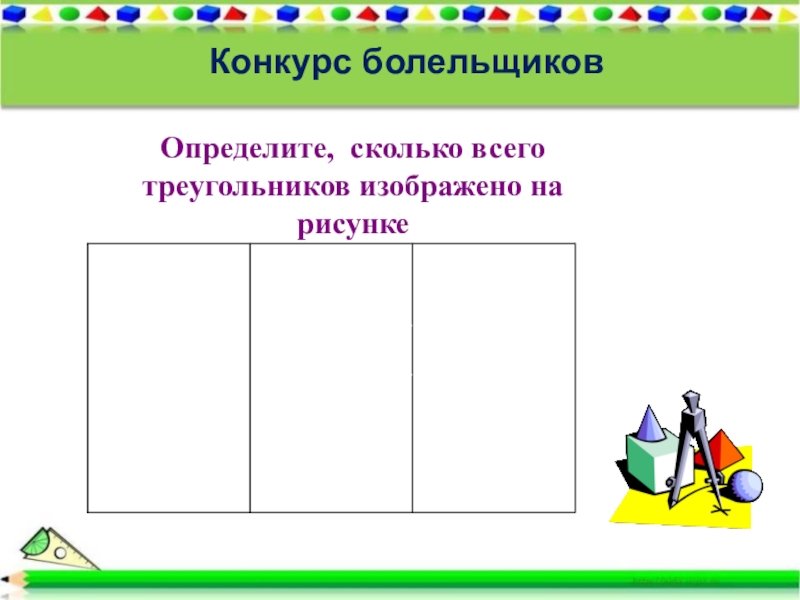 Слайд 9Определите, сколько всего треугольников изображено на рисунке