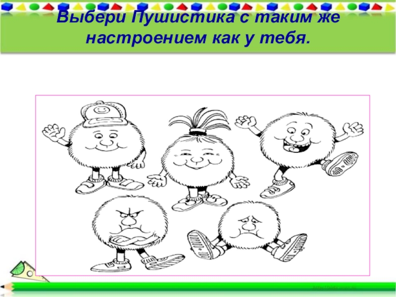 Слайд 31Выбери Пушистика с таким же настроением как у тебя.
