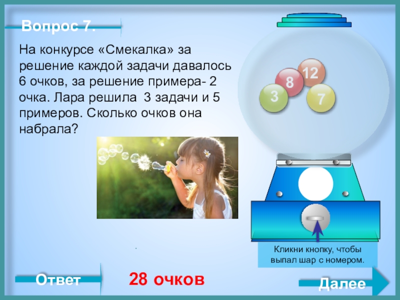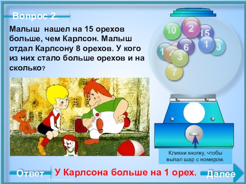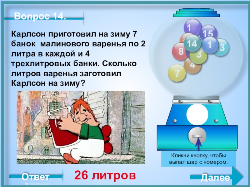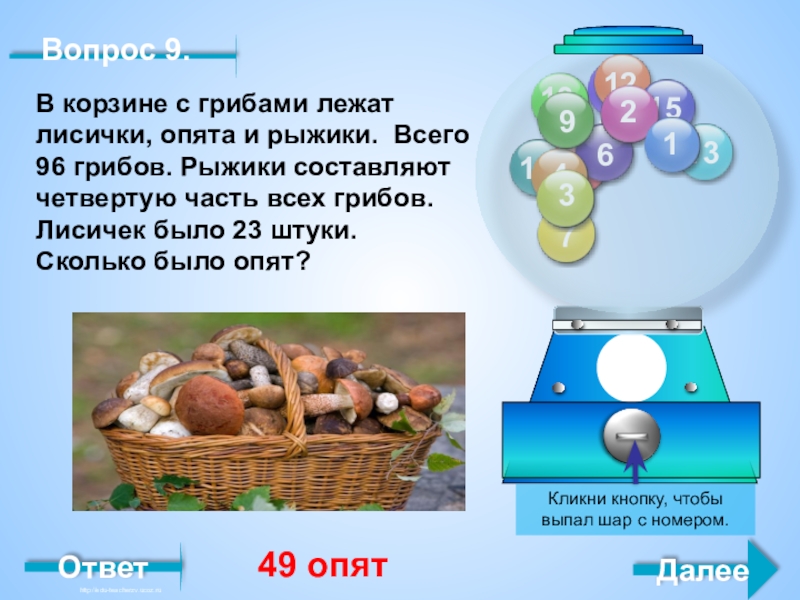 Кликни кнопку, чтобы выпал шар с номером.
