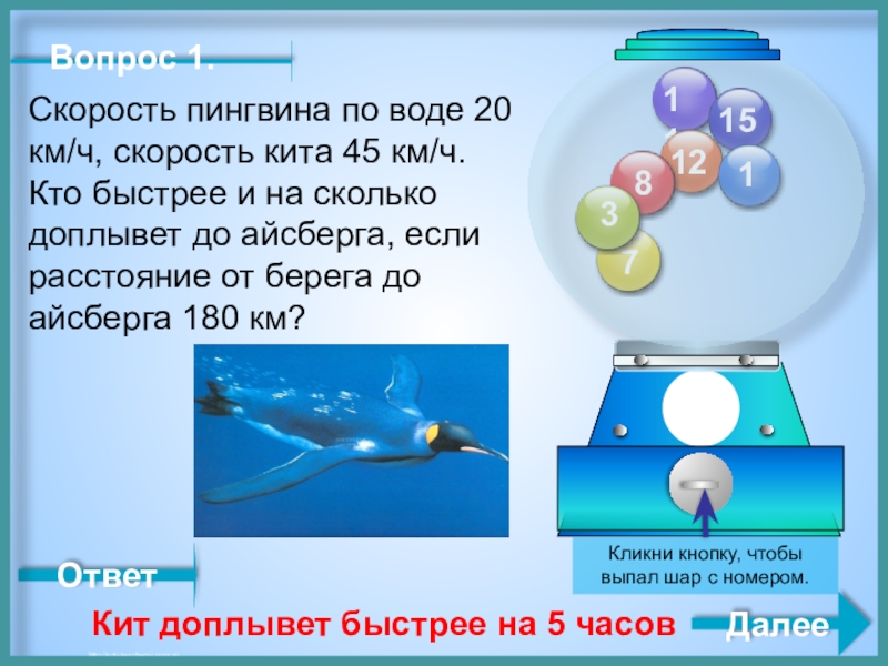 Кит доплывет быстрее на 5 часов