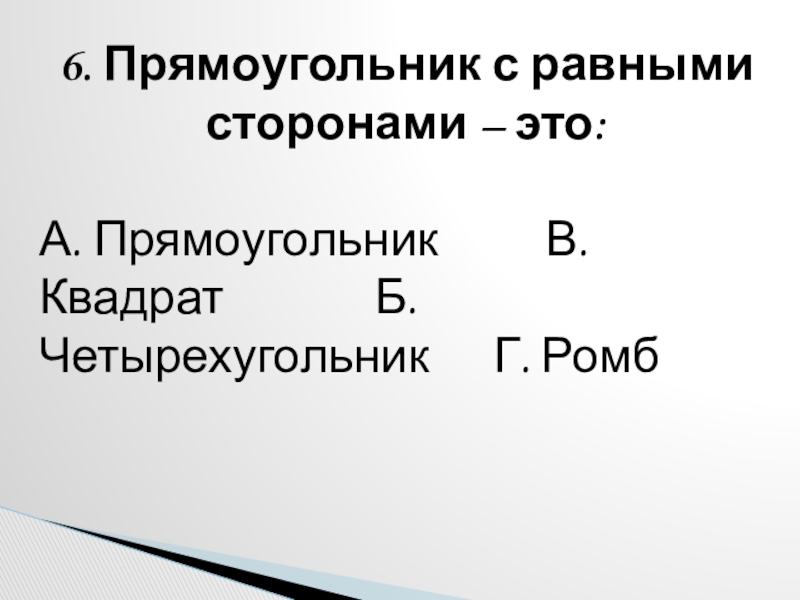 Слайд 346. Прямоугольник с равными сторонами – это: