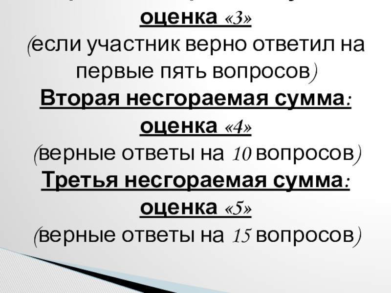 Слайд 5Первая несгораемая сумма: оценка «3»