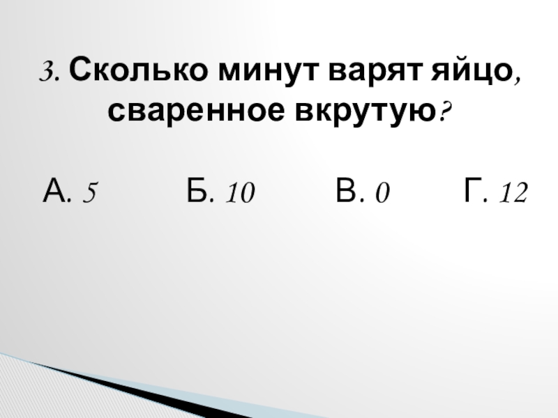 Слайд 303. Сколько минут варят яйцо, сваренное вкрутую?