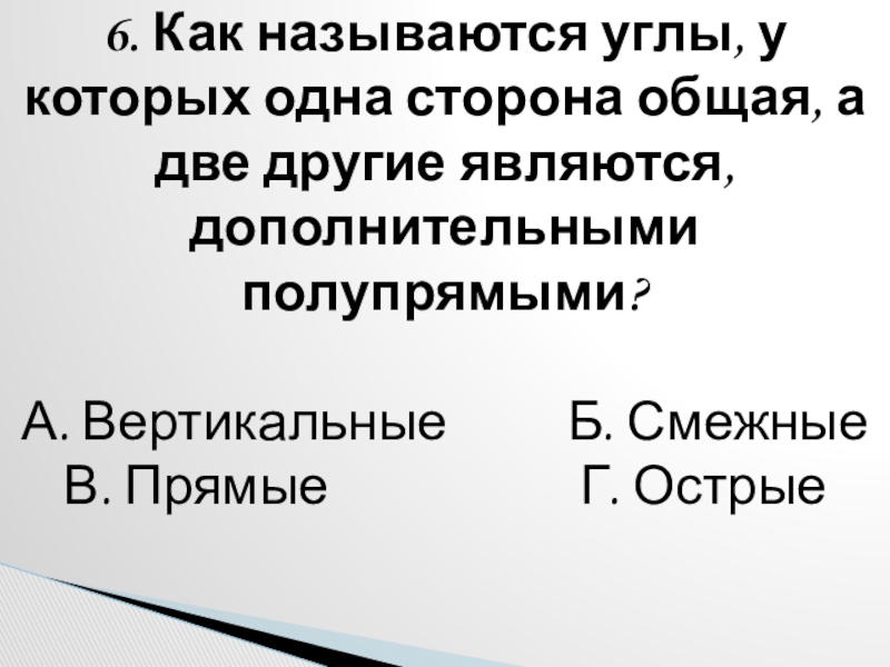 Слайд 146. Как называются углы, у которых одна сторона общая, а две