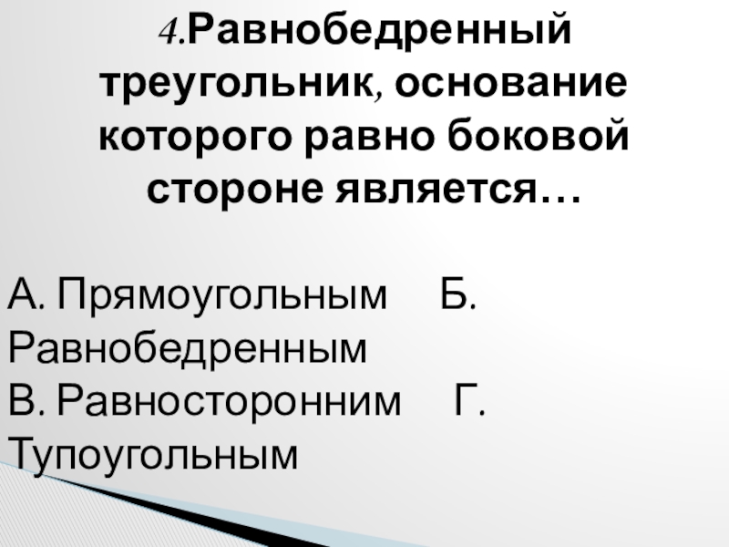 Слайд 114.Равнобедренный треугольник, основание которого равно боковой стороне является…