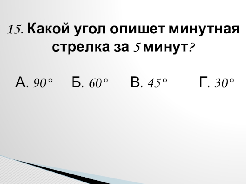 Слайд 4415. Какой угол опишет минутная стрелка за 5 минут?
