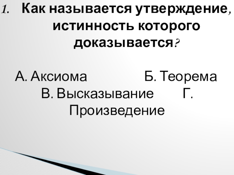 Слайд 8Как называется утверждение, истинность которого доказывается?