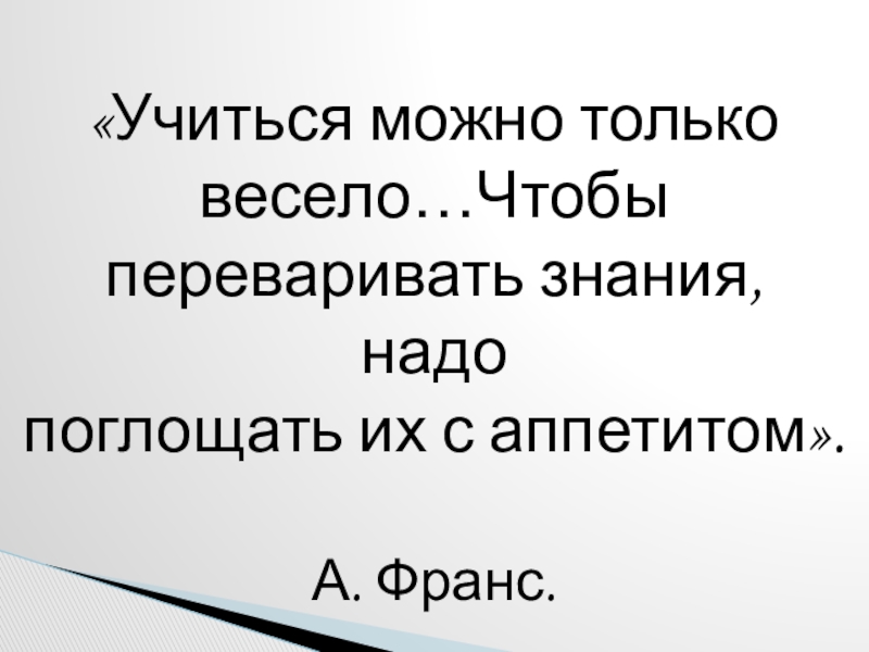 Слайд 2«Учиться можно только весело…Чтобы переваривать знания, надо