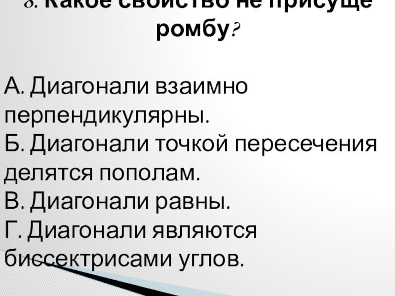 В. Квадрат Б. Четырехугольник Г. Ромб