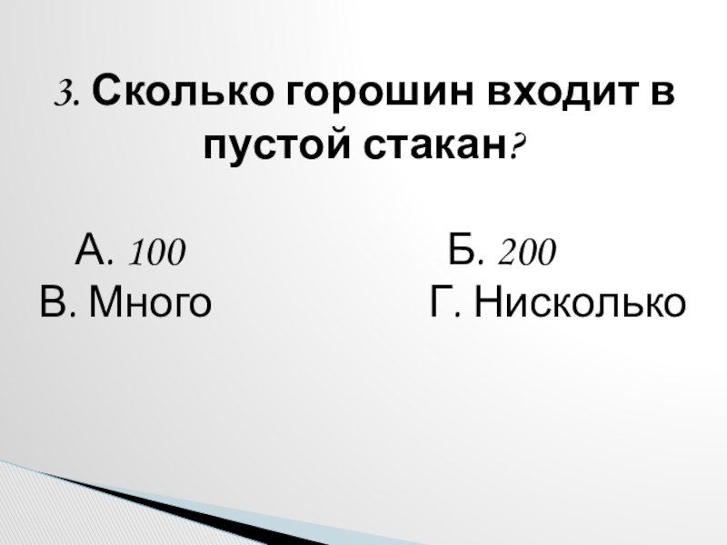 Слайд 103. Сколько горошин входит в пустой стакан?