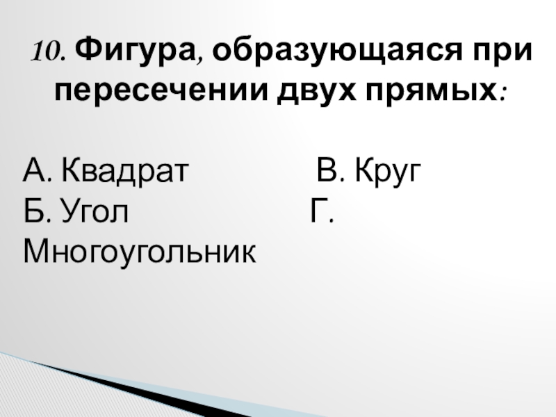 Слайд 1810. Фигура, образующаяся при пересечении двух прямых: