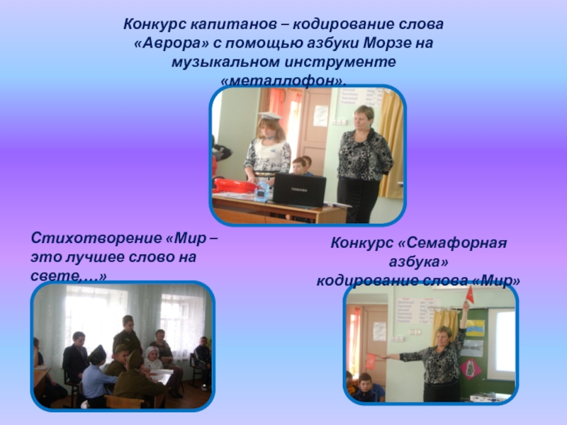 Конкурс капитанов – кодирование слова «Аврора» с помощью азбуки Морзе на музыкальном инструменте «металлофон».