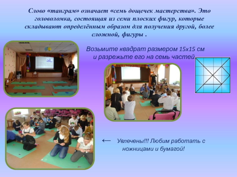 Возьмите квадрат размером 15x15 см и разрежьте его на семь частей.