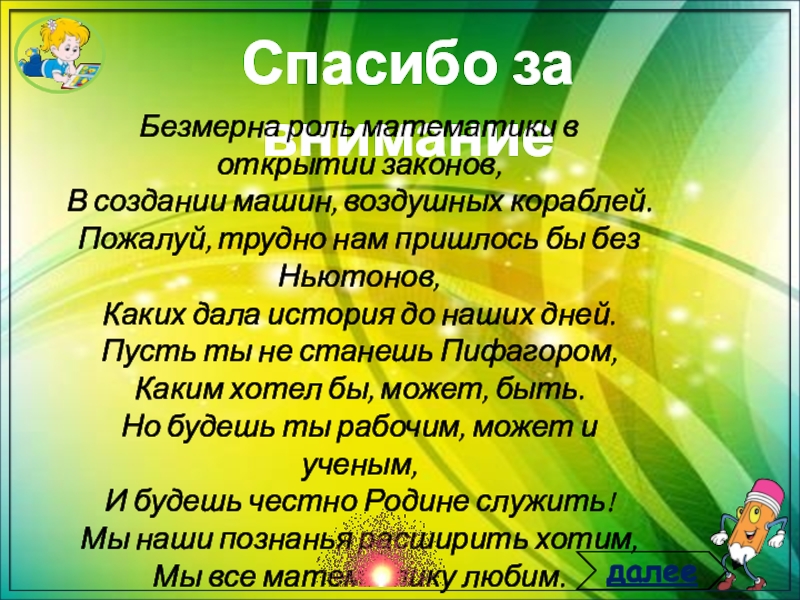 Это сайт презентаций, где можно хранить и обмениваться своими презентациями, докладами, проектами, шаблонами в формате PowerPoint с другими пользователями. Мы помогаем школьникам, студентам, учителям, преподавателям хранить и обмениваться учебными материалами.