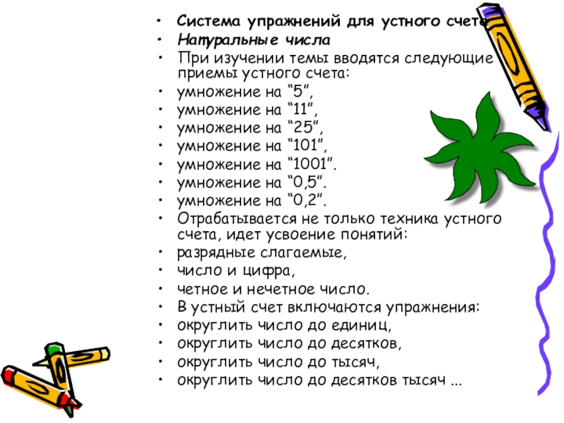 Система упражнений для устного счета
