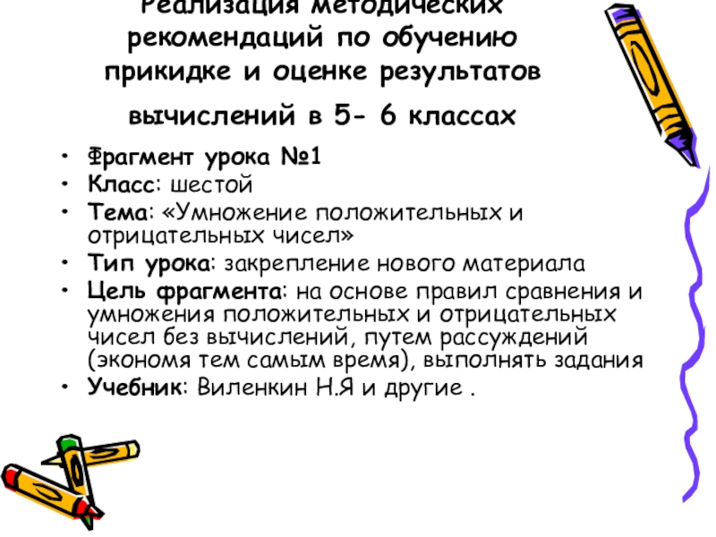 Разработка фрагментов уроков для 5–6 классов, направленных на формирование умения прикидывать и оценивать результат.