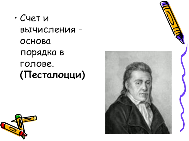 Слайд 2Счет и вычисления - основа порядка в голове. (Песталоцци)