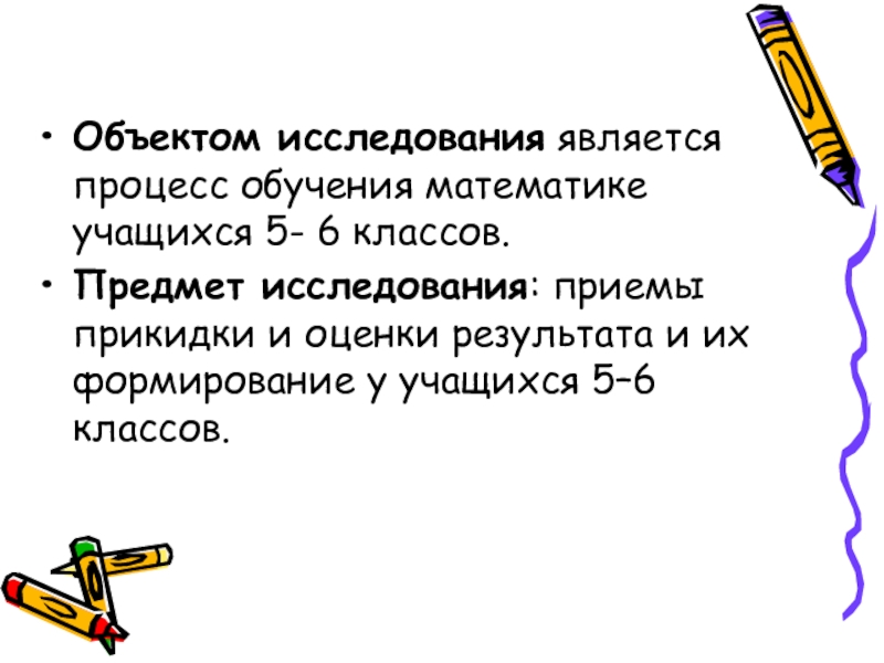 Слайд 4Объектом исследования является процесс обучения математике учащихся 5- 6 классов.