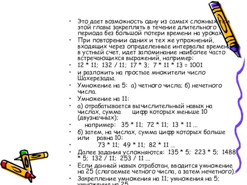Закрепление умножения на 11; умножения на 5; умножения на 25.