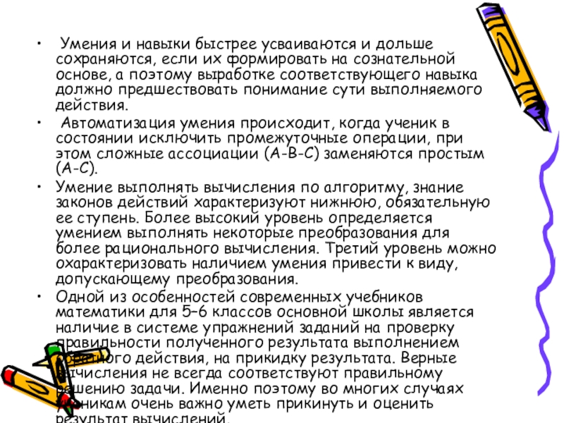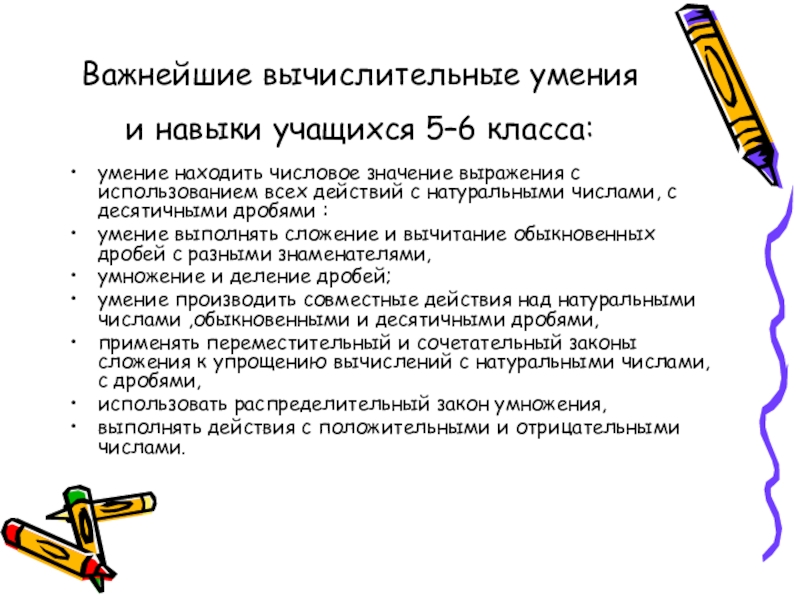 Слайд 9Важнейшие вычислительные умения и навыки учащихся 5–6 класса: