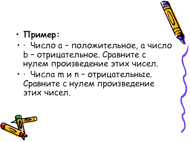 · Числа m и n – отрицательные. Сравните с нулем произведение этих чисел.