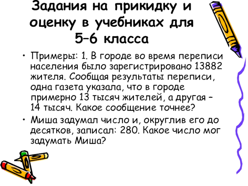 Слайд 12Задания на прикидку и оценку в учебниках для 5–6 класса