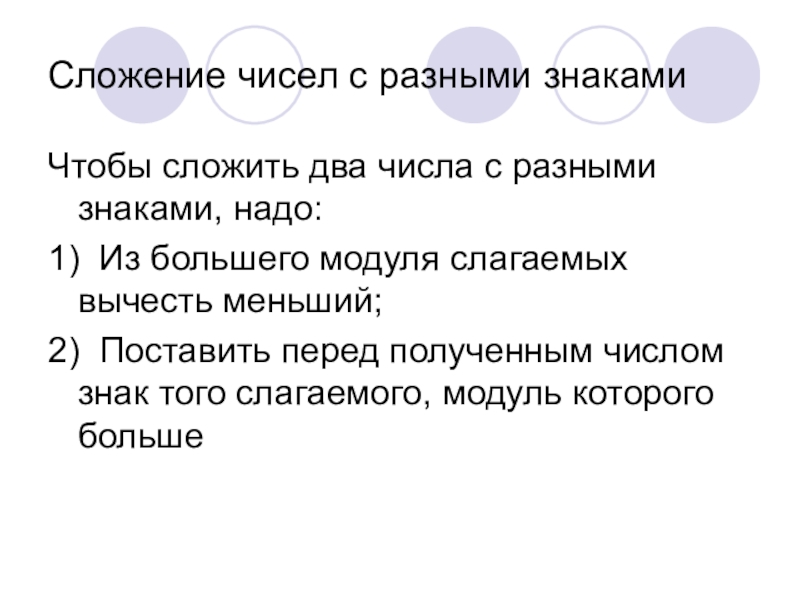 Слайд 6Сложение чисел с разными знаками